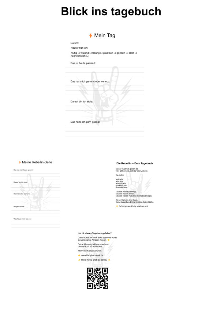 Die kleine Rebellin ist mehr als nur ein Tagebuch. Sie ist ein Ort für Mut, Gedanken und echte Gefühle. Ein Platz, an dem Mädchen sie selbst sein dürfen – ohne Regeln, ohne Erwartungen, ohne sich verstellen zu müssen.